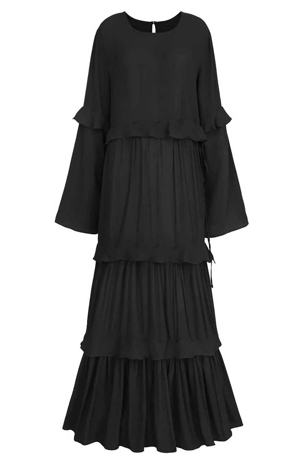 Our classic black go-to dress is a multitasking closet hero, designed to be worn in 14 different ways to endless occasions. The dress has a figure-flattering cut and pretty ruffle detailing, making it both feminine and comfortable. Shaped to an easy fit through the hips with a drawstring waist, it will see you through work, events and parties in effortless style that is unique to you.