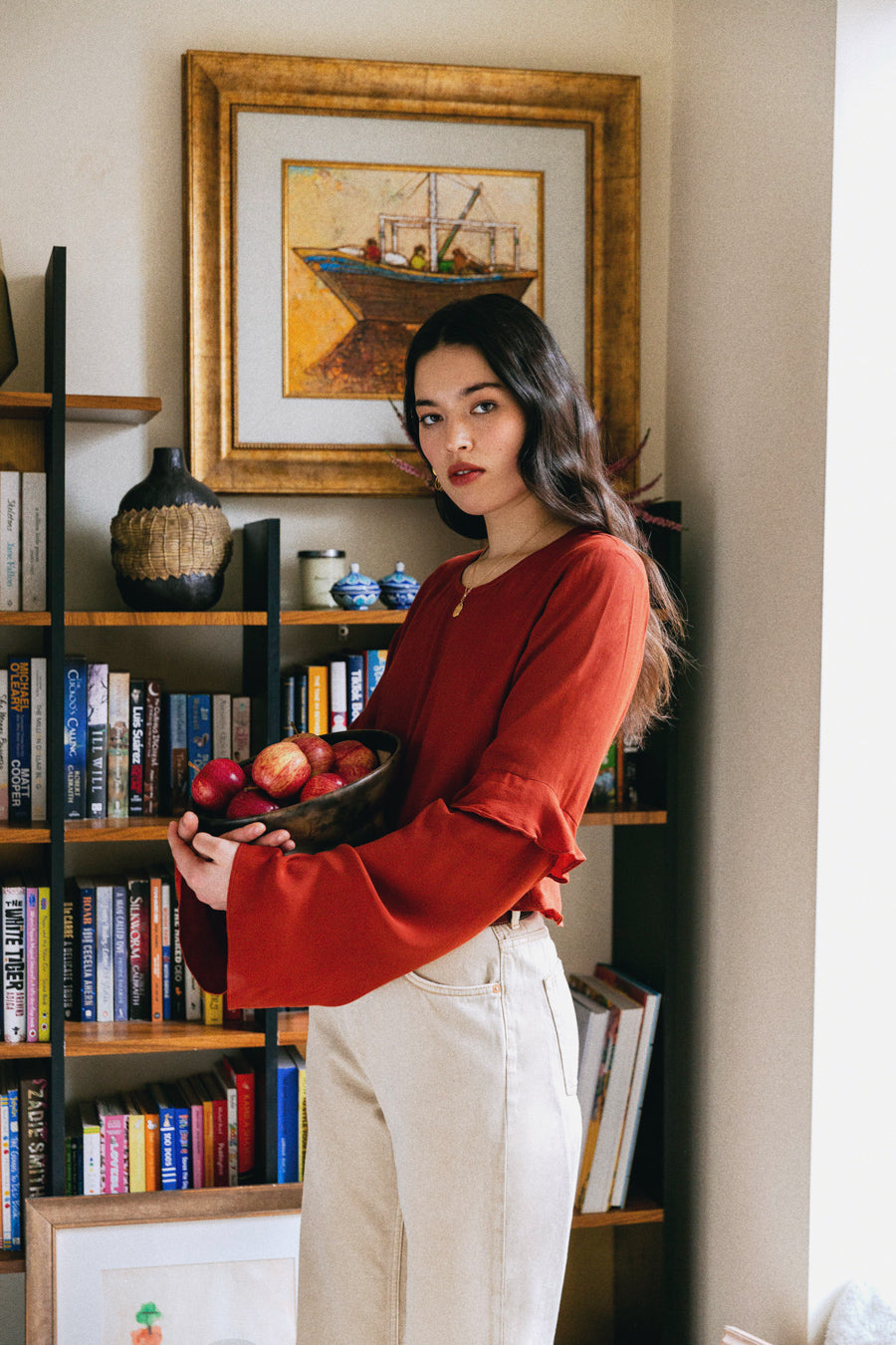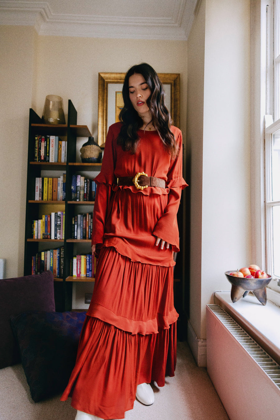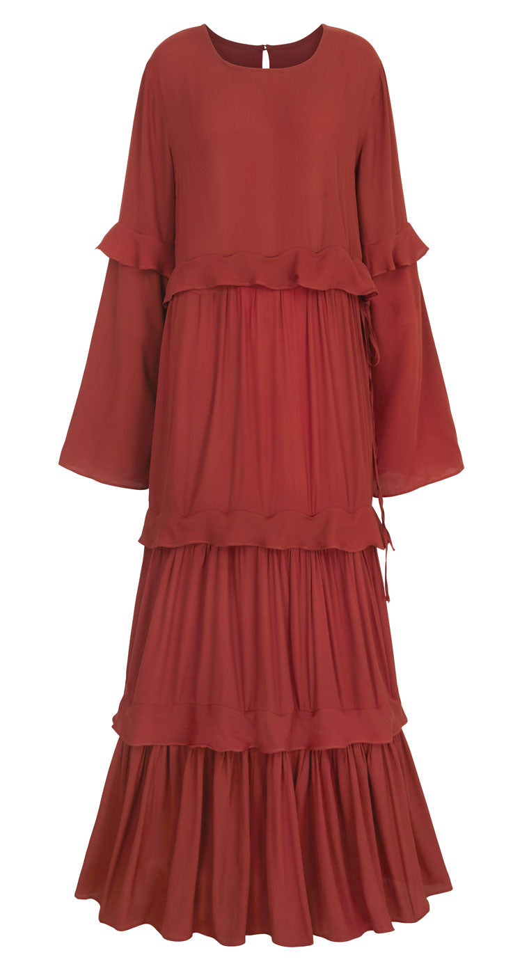Our foxy rust go-to dress is a multitasking closet hero, designed to be worn in 14 different ways to endless occasions. The dress has a figure-flattering cut and pretty ruffle detailing, making it both feminine and comfortable. Shaped to an easy fit through the hips with a drawstring waist, it will see you through work, events and parties in effortless style that is unique to you.
