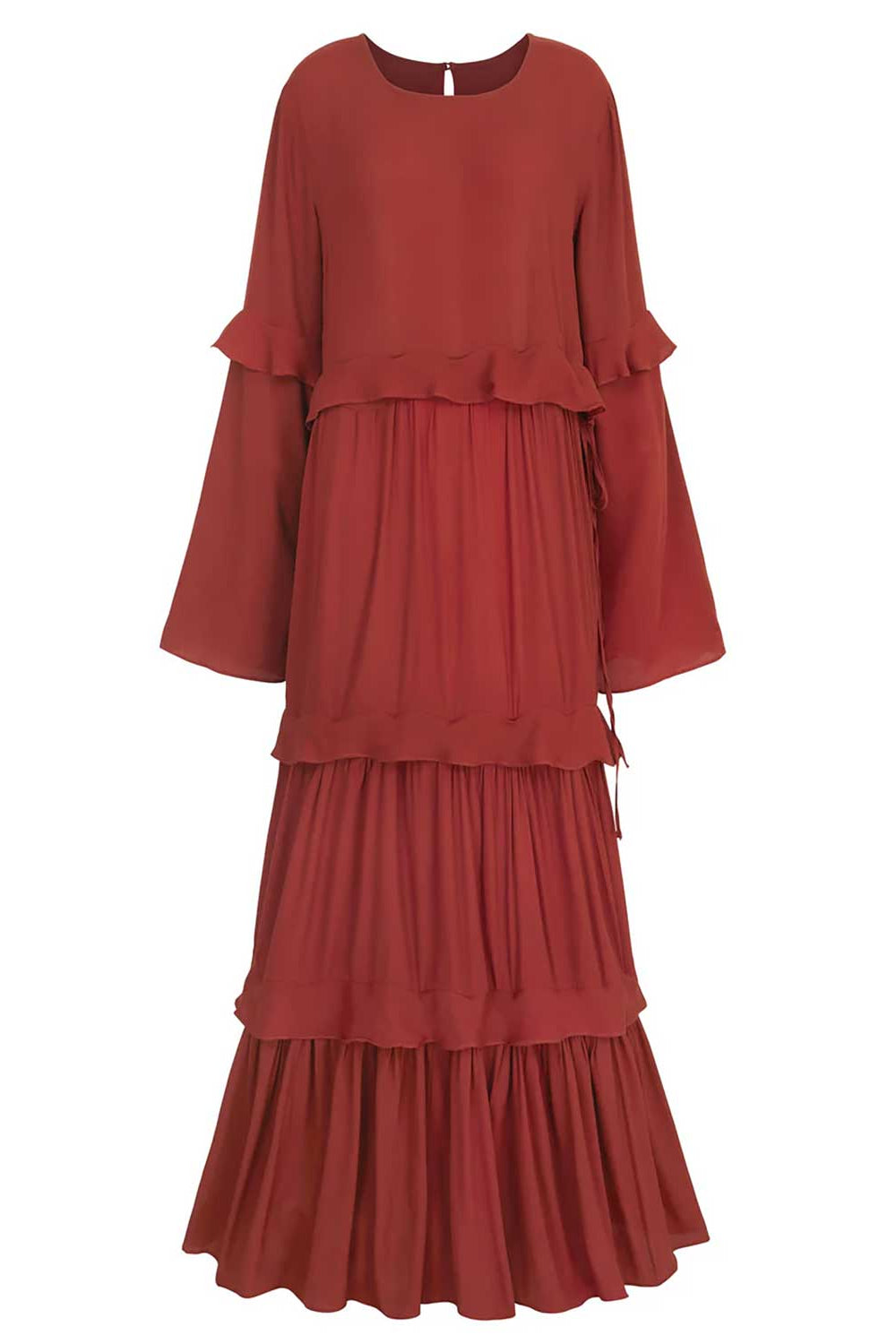 Our foxy rust go-to dress is a multitasking closet hero, designed to be worn in 14 different ways to endless occasions. The dress has a figure-flattering cut and pretty ruffle detailing, making it both feminine and comfortable. Shaped to an easy fit through the hips with a drawstring waist, it will see you through work, events and parties in effortless style that is unique to you.