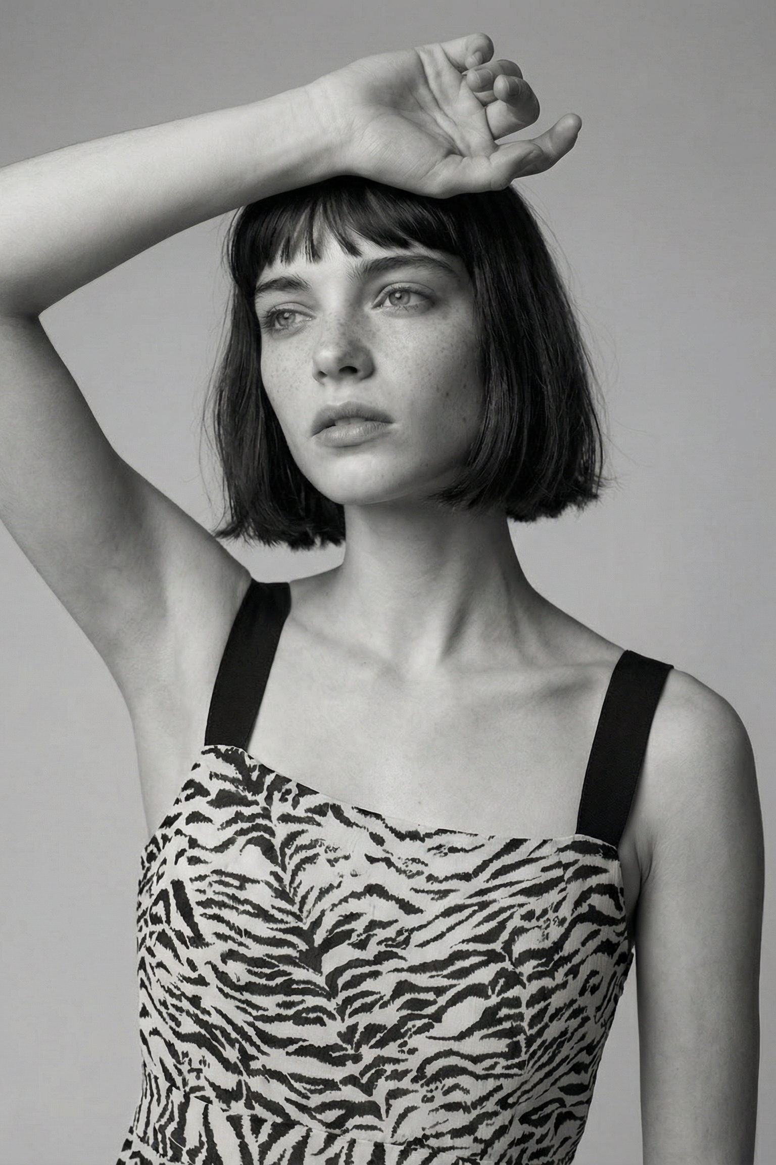A uniquely convertible piece which can be worn in multiple ways. Features a top and tiered skirt that connect at the waist, allowing it to be worn as a dress or as separates. The top is reversible. The tie can be fastened in the front creating a V-neck and cut-out detailing, or it can be worn with the square neck in the front (with the tie at the back). The bottom tier of the skirt is detachable, so it can be worn as a maxi or midi. Black satin straps with top-stitch detailing. All-over animal print in crepe viscose